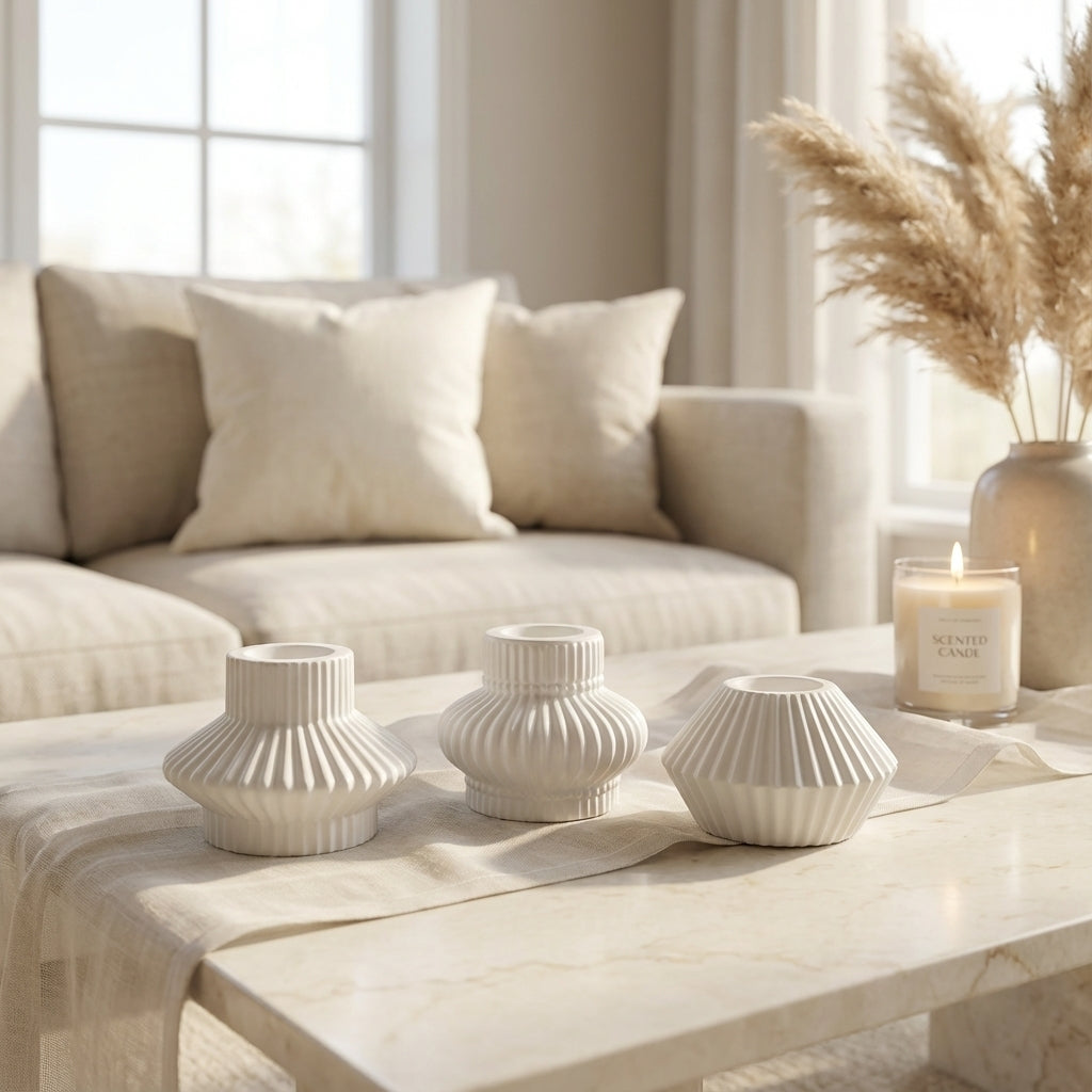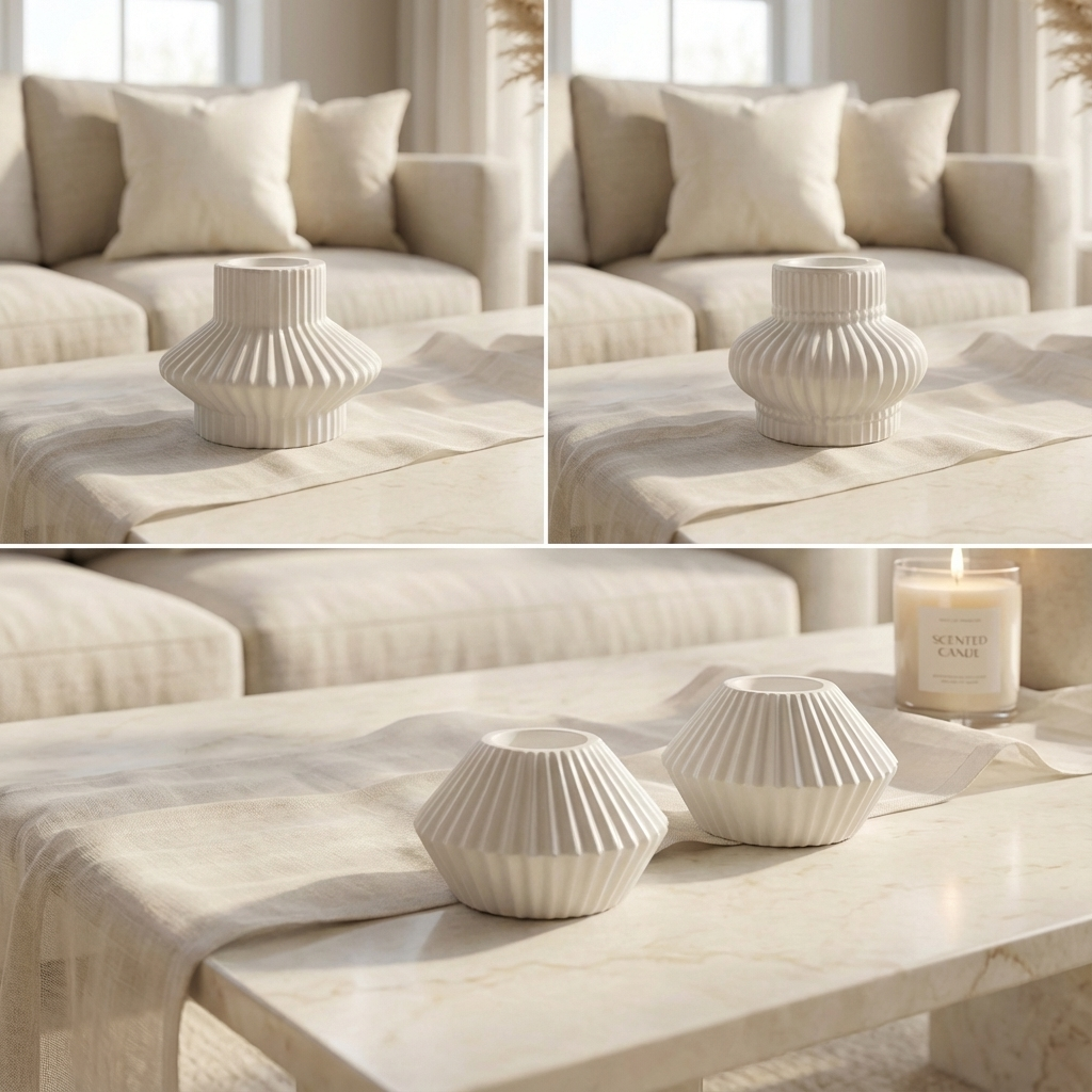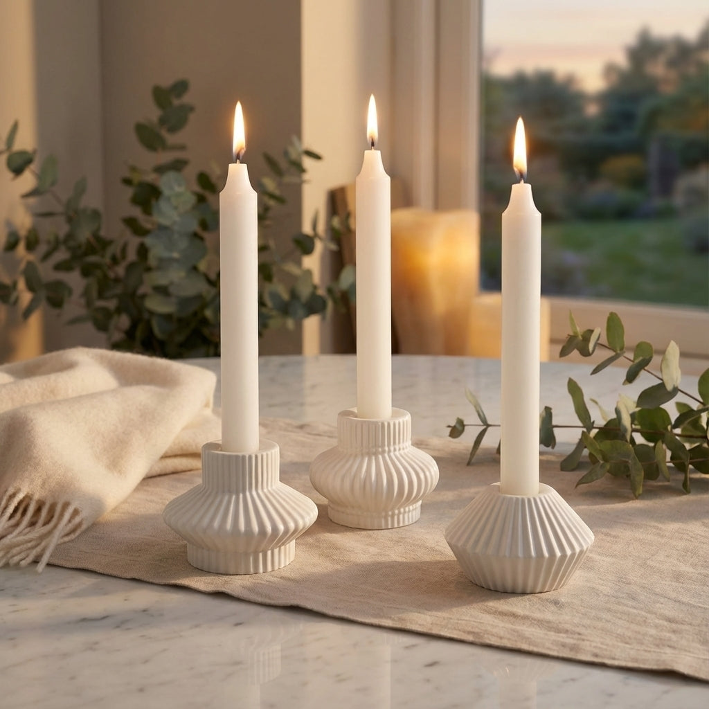 3 x käsinvalmistettu kynttilänjalka Väri: luonnonvalkoinen Materiaali: käsinvalettu alabaster-kipsi Käsin viimeistelty