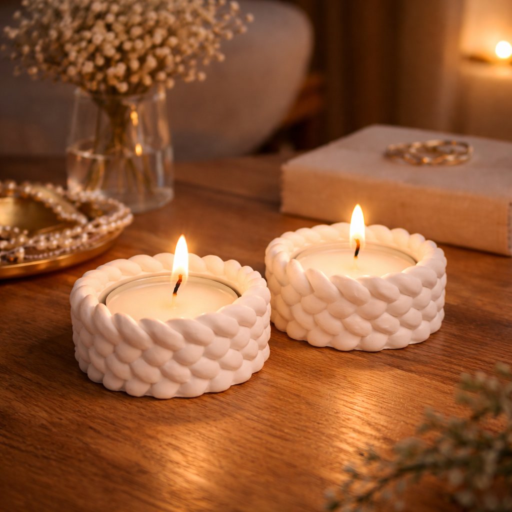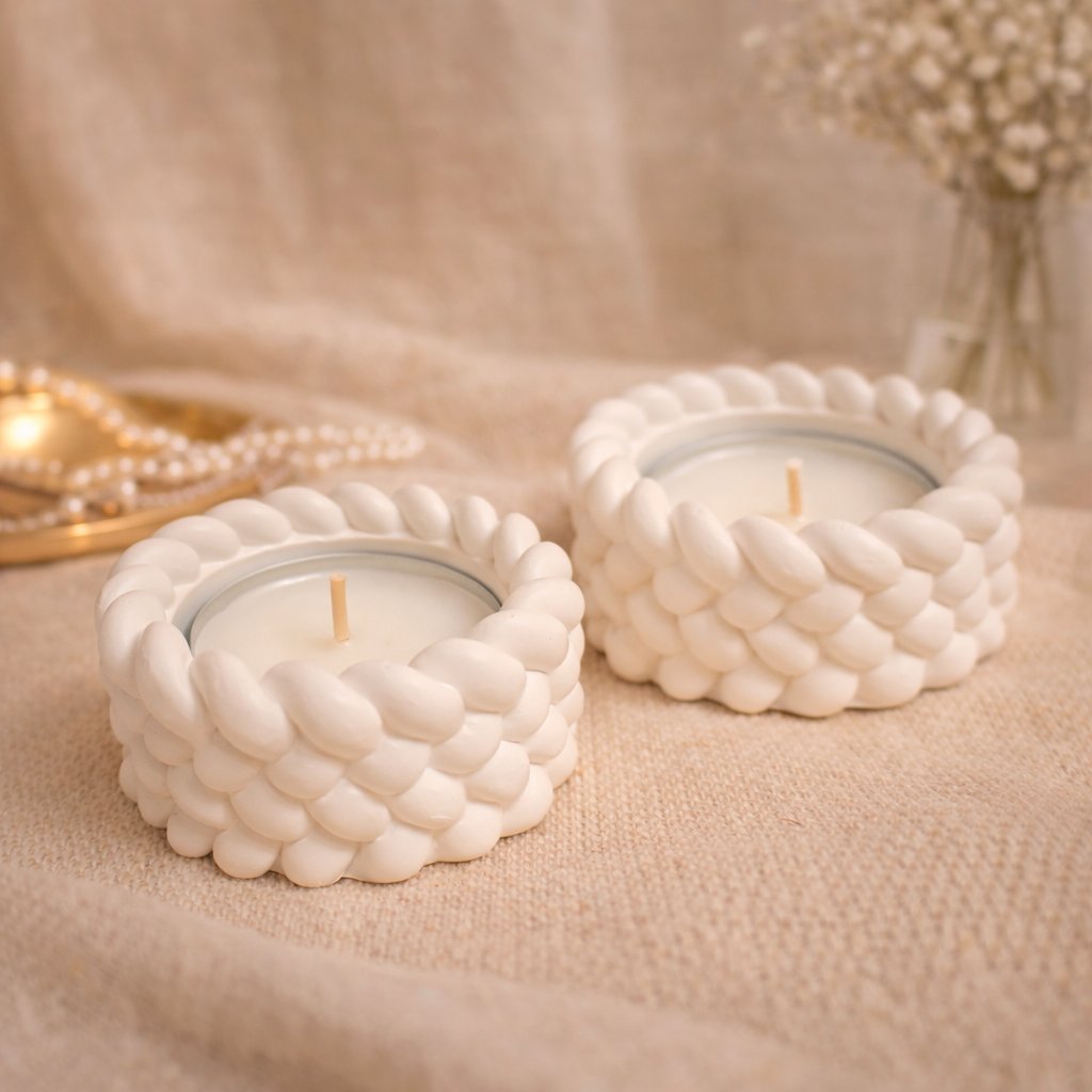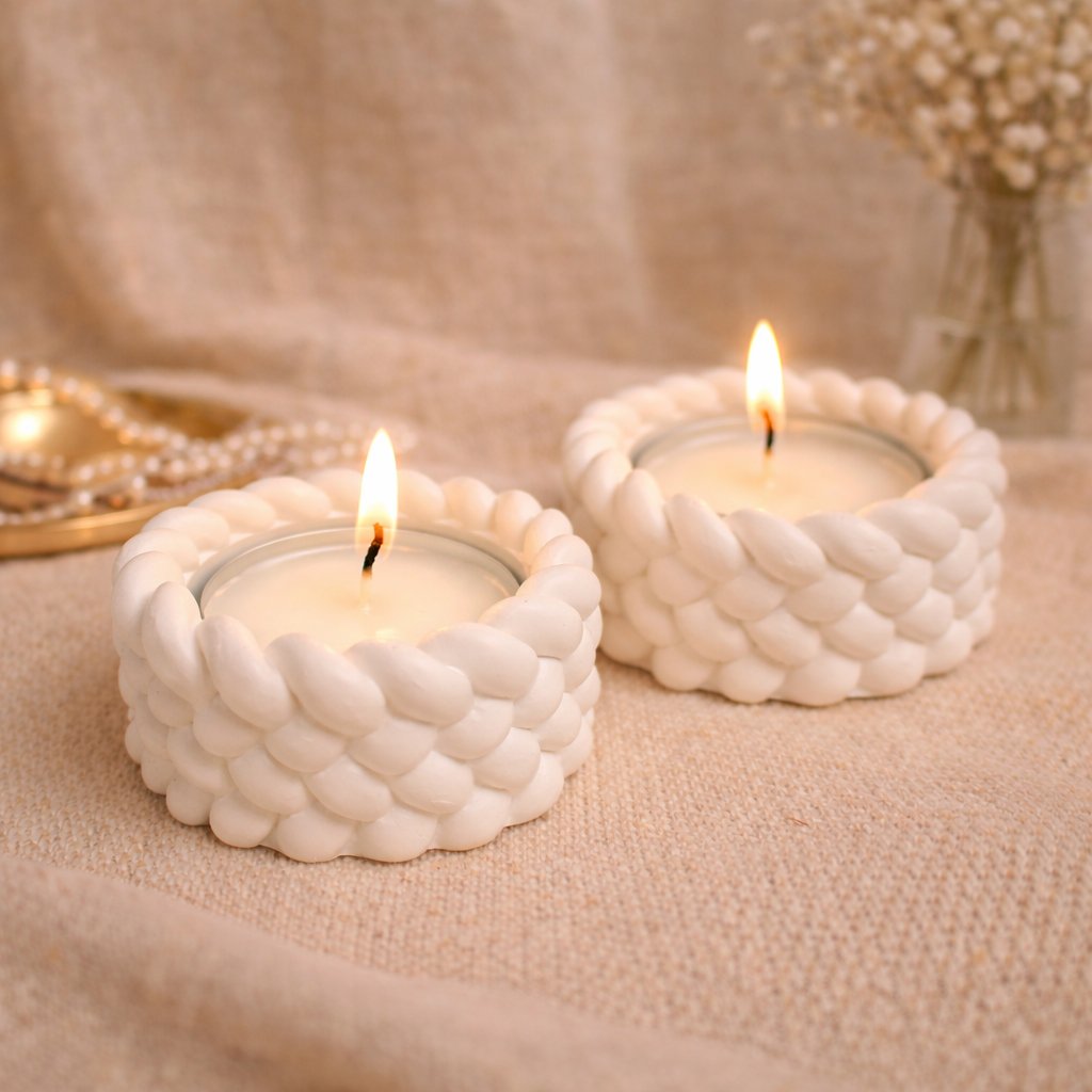 2 x tuikkukippo Väri: luonnonvalkoinen / lämmin vaalea Koko halkaisija 6cm, korkeus 3cm Materiaali: käsinvalettu alabaster-kipsi Valmistettu käsin Suomessa